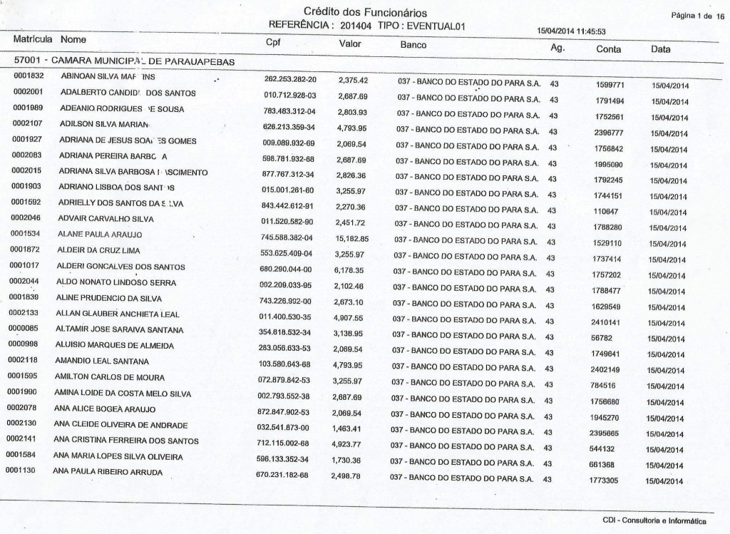 de esclarecer a folha de pagamento da Câmara Municipal de Parauapebas